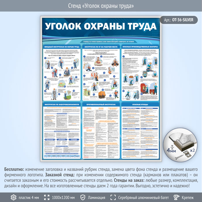Стенд «Уголок охраны труда» (OT-36-SILVER) в Пензе купить