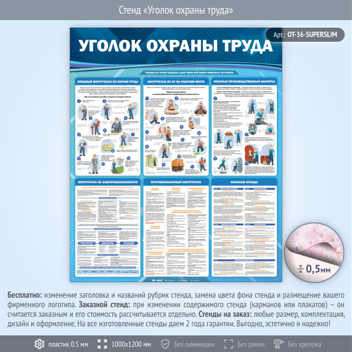 Стенд «Уголок охраны труда» (OT-36-SUPERSLIM) в Пензе купить