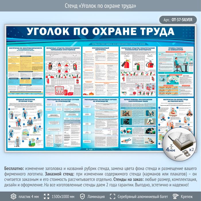 Стенд «Уголок по охране труда» (OT-37-SILVER) в Пензе купить