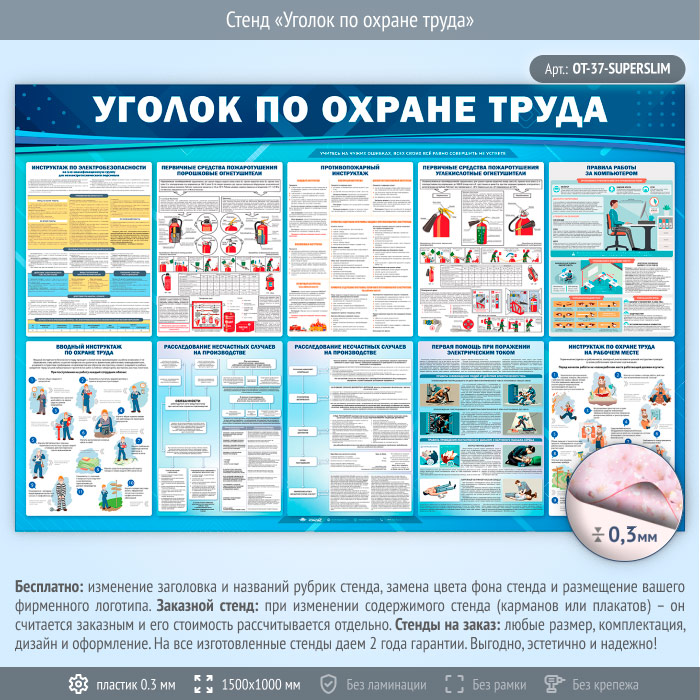 Стенд «Уголок по охране труда» (OT-37-SUPERSLIM) в Пензе купить