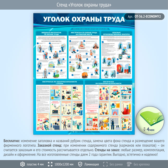Стенд «Уголок охраны труда» (OT-36.2-ECONOMY2) в Пензе купить