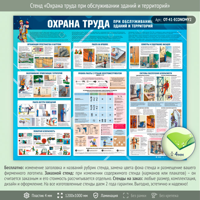Стенд «Охрана труда при обслуживании зданий и территорий» (OT-41-ECONOMY2) в Пензе купить