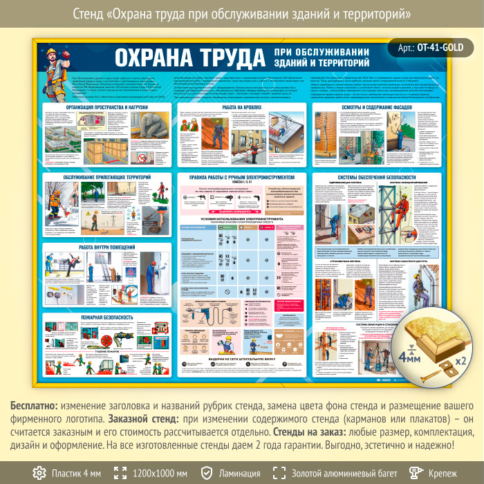 Стенд «Охрана труда при обслуживании зданий и территорий» (OT-41-GOLD) в Пензе купить