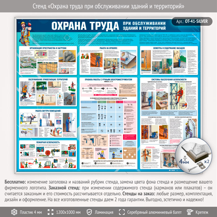 Стенд «Охрана труда при обслуживании зданий и территорий» (OT-41-SILVER) в Пензе купить