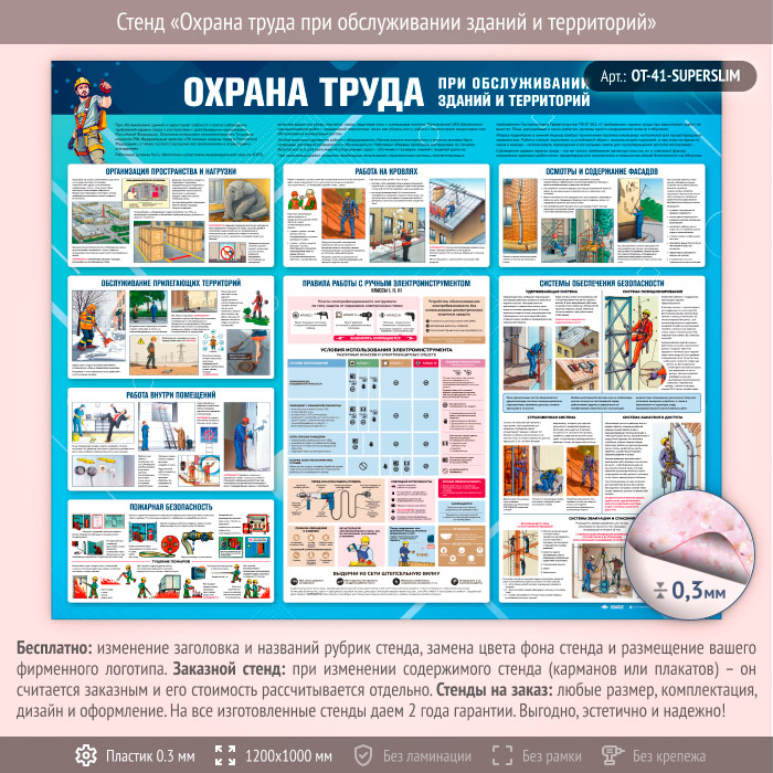 Стенд «Охрана труда при обслуживании зданий и территорий» (OT-41-SUPERSLIM) в Пензе купить