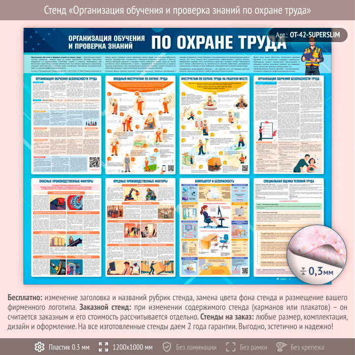 Стенд «Организация обучения и проверка знаний по охране труда» (OT-42-SUPERSLIM) в Пензе купить