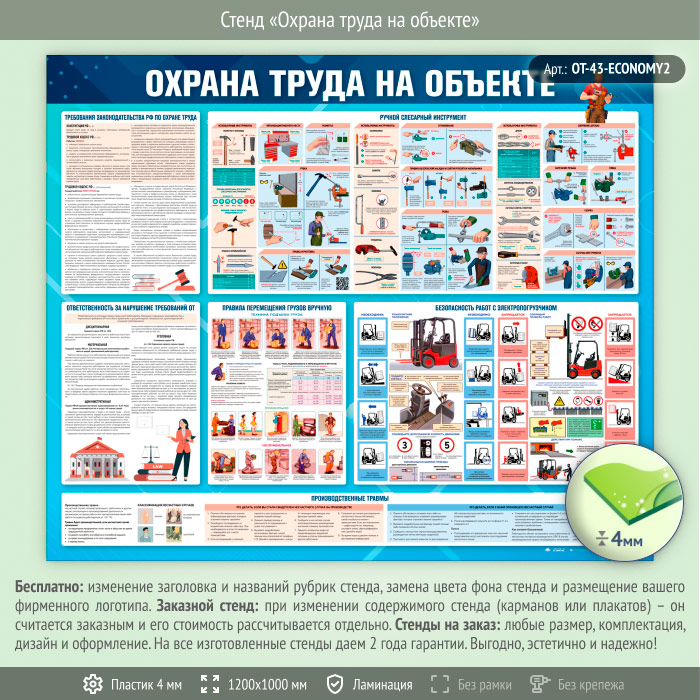 Стенд «Охрана труда на объекте» (OT-43-ECONOMY2) в Пензе купить