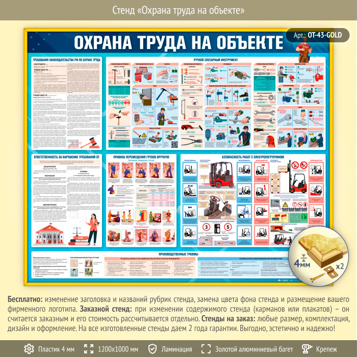 Стенд «Охрана труда на объекте» (OT-43-GOLD) в Пензе купить
