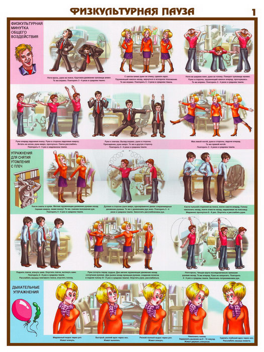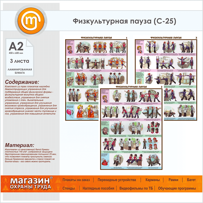 Плакаты «Физкультурная пауза» (С-25, ламинированная бумага, А2, 3 листа) в Пензе купить