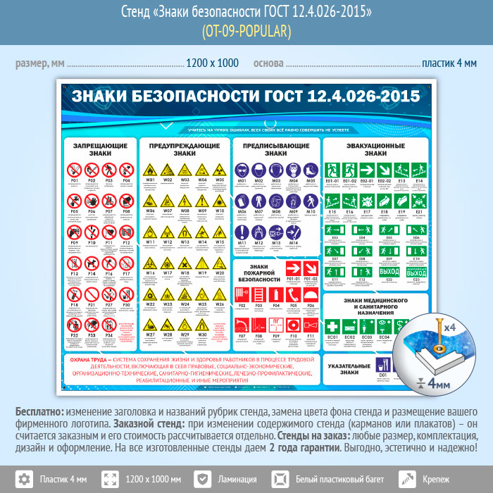Стенд «Знаки безопасности ГОСТ 12.4.026-2015» (OT-09-POPULAR) в Пензе купить