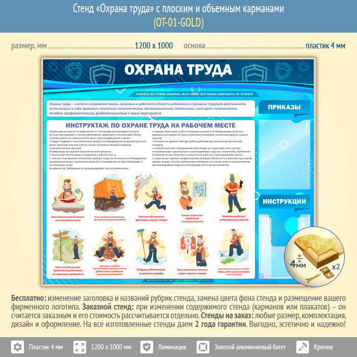 Стенд «Охрана труда» с плоским и объемным карманами (OT-01-GOLD) в Пензе купить