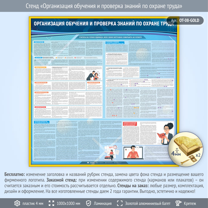 Стенд «Организация обучения и проверка знаний по охране труда» (OT-08-GOLD) в Пензе купить