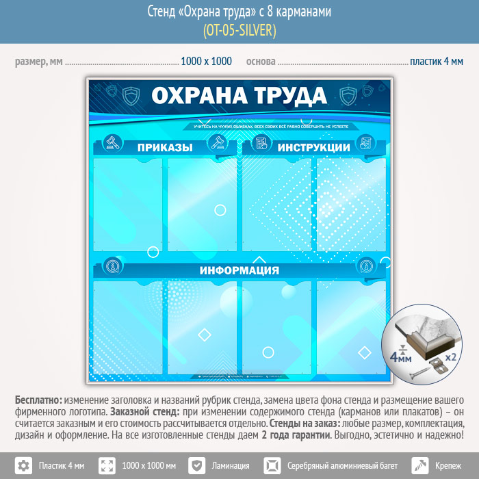 Стенд «Охрана труда» с 8 карманами (OT-05-SILVER) в Пензе купить