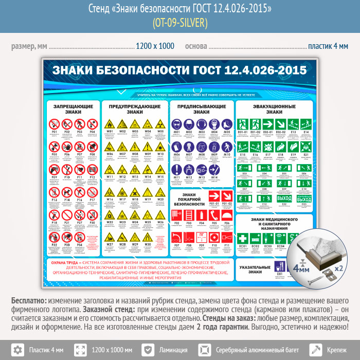 Стенд «Знаки безопасности ГОСТ 12.4.026-2015» (OT-09-SILVER) в Пензе купить