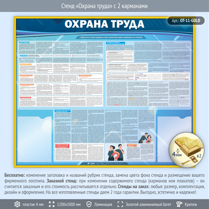 Стенд «Охрана труда» с 2 карманами (OT-11-GOLD) в Пензе купить