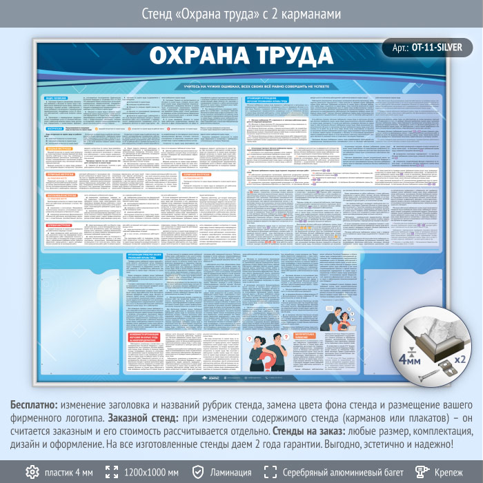 Стенд «Охрана труда» с 2 карманами (OT-11-SILVER) в Пензе купить