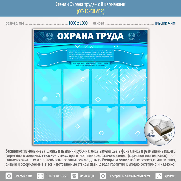 Стенд «Охрана труда» с 8 карманами (OT-12-SILVER) в Пензе купить