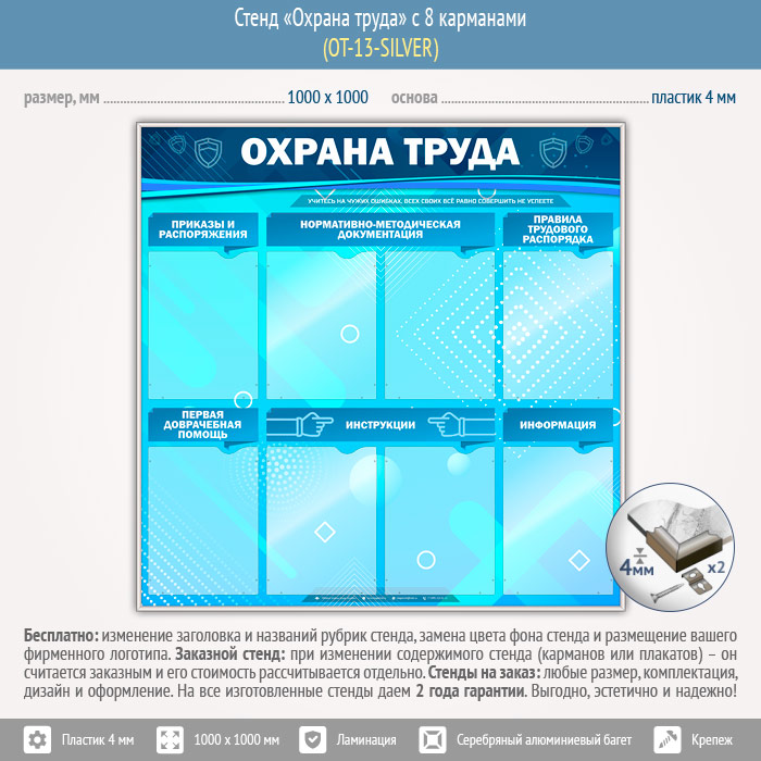 Стенд «Охрана труда» с 8 карманами (OT-13-SILVER) в Пензе купить