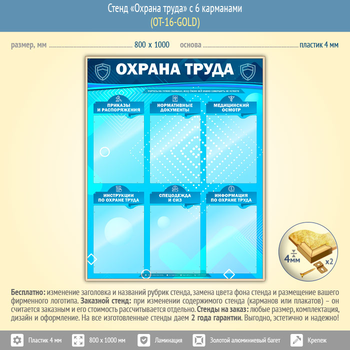 Стенд «Охрана труда» с 6 карманами (OT-16-GOLD) в Пензе купить