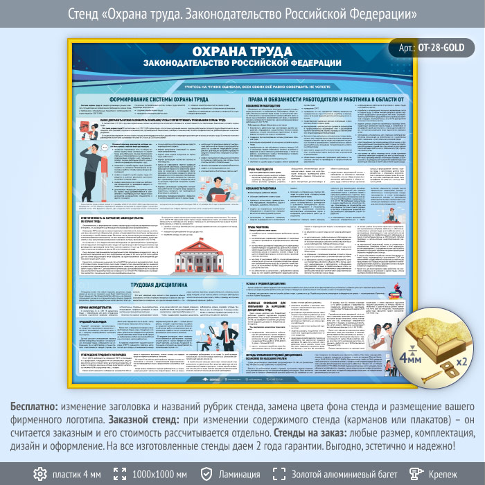 Стенд «Охрана труда. Законодательство Российской Федерации» (OT-28-GOLD) в Пензе купить