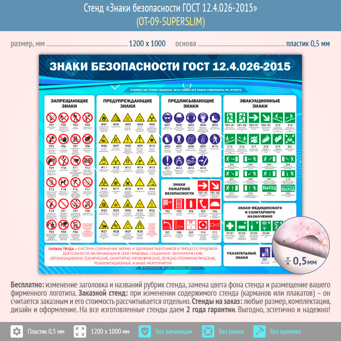Стенд «Знаки безопасности ГОСТ 12.4.026-2015» (OT-09-SUPERSLIM) в Пензе купить