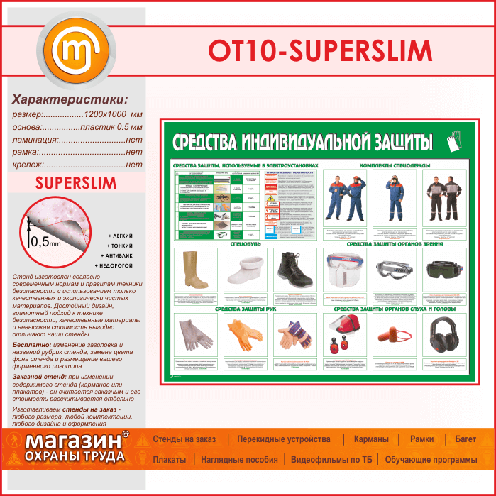 Стенд «Средства индивидуальной защиты» (OT-10-SUPERSLIM) в Пензе купить
