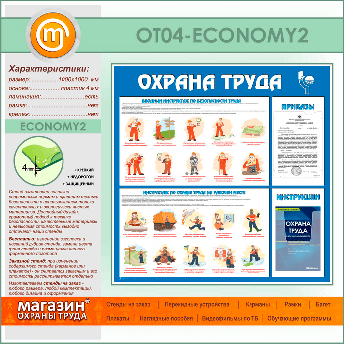 Стенд «Охрана труда» с плоским и объемным карманами (OT-04-ECONOMY2) в Пензе купить