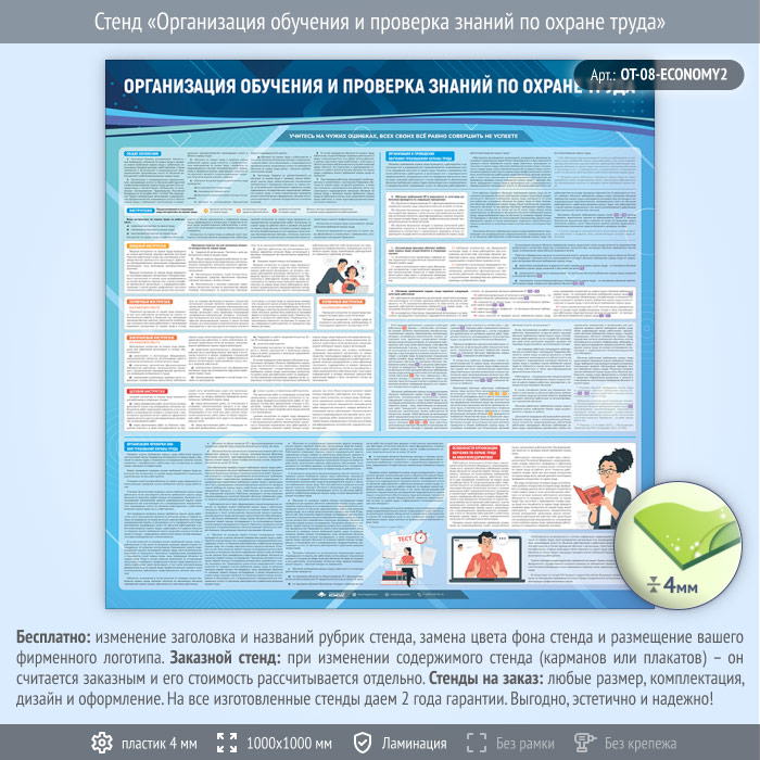Стенд «Организация обучения и проверка знаний по охране труда» (OT-08-ECONOMY2) в Пензе купить