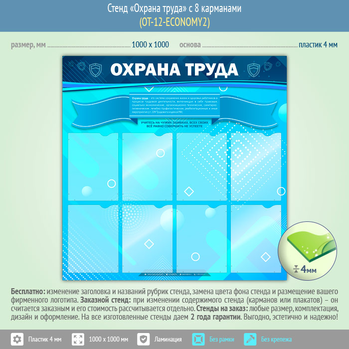 Стенд «Охрана труда» с 8 карманами (OT-12-ECONOMY2) в Пензе купить