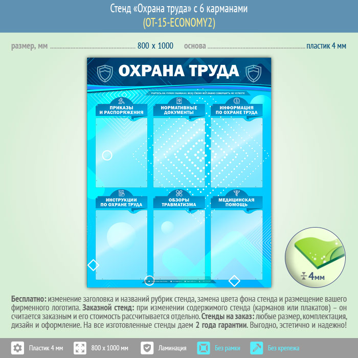 Стенд «Охрана труда» с 6 карманами (OT-15-ECONOMY2) в Пензе купить