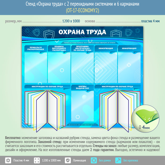 Стенд «Охрана труда» с 2 перекидными системами и 6 карманами (OT-17-ECONOMY2) в Пензе купить