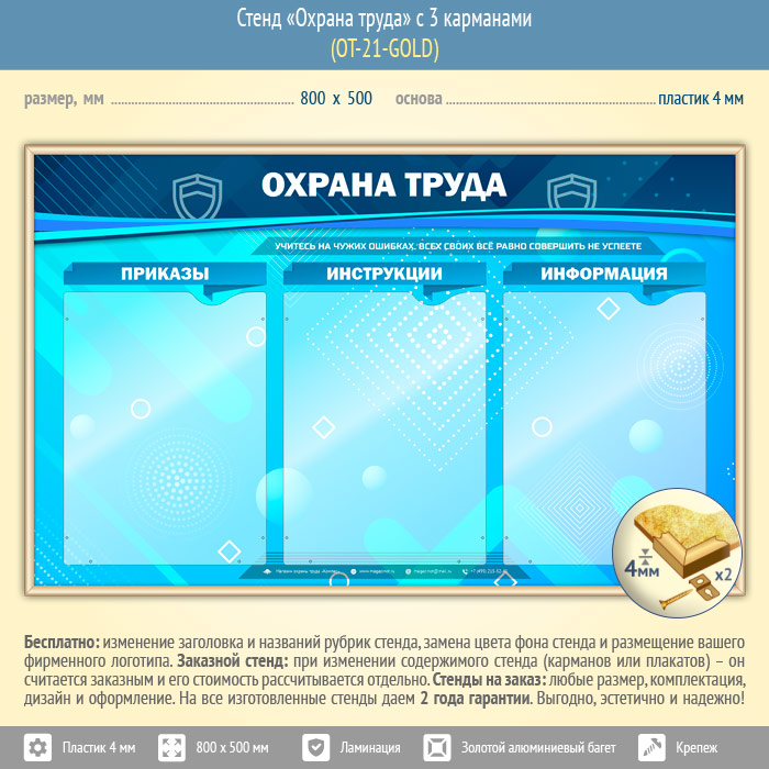 Стенд «Охрана труда» с 3 карманами (OT-21-GOLD) в Пензе купить