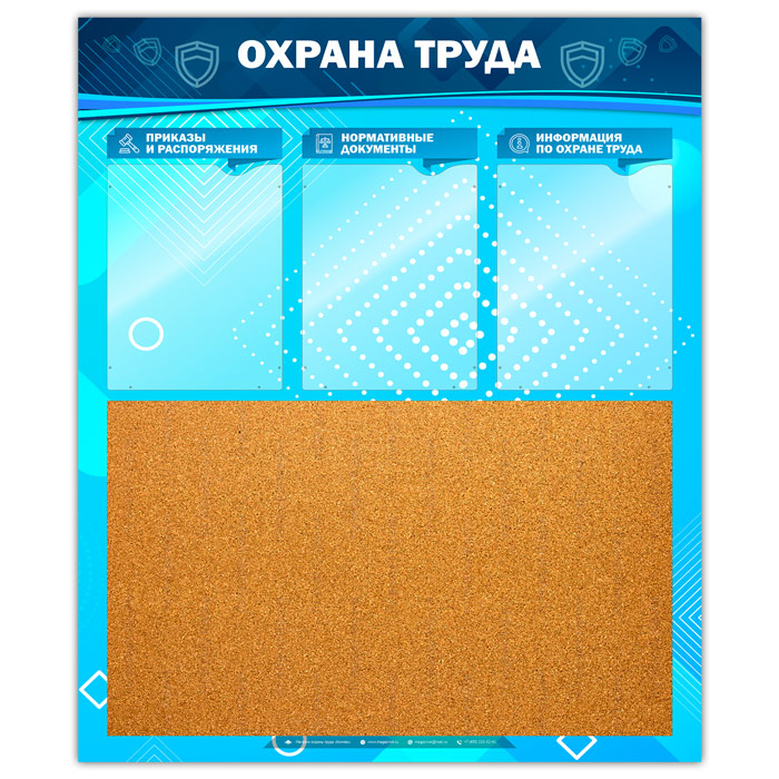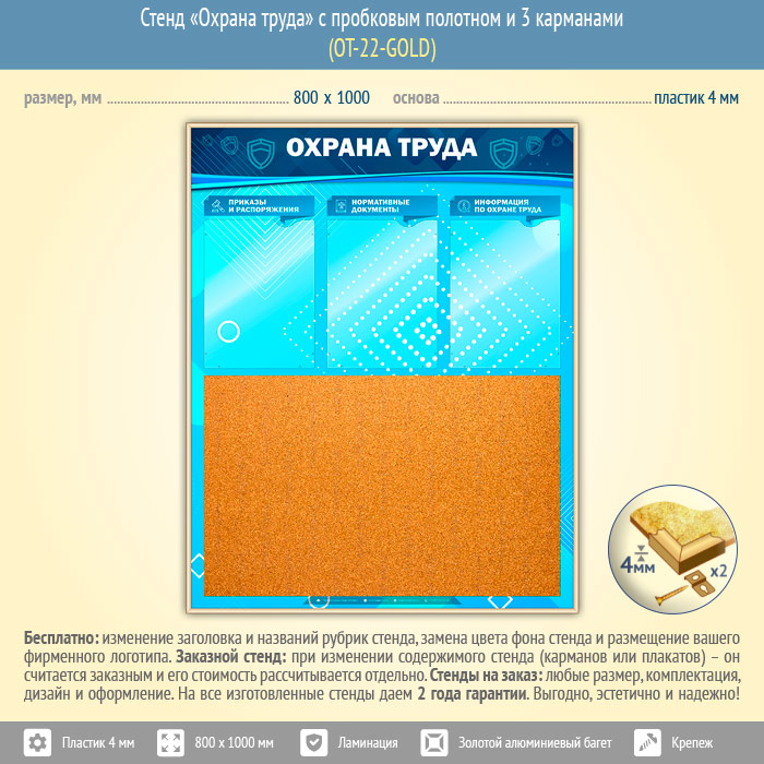 Стенд «Охрана труда» с пробковым полотном и 3 карманами (OT-22-GOLD) в Пензе купить