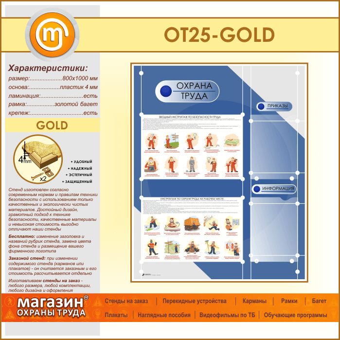 Стенд «Охрана труда» с 2 плоскими карманами (OT-25-GOLD) в Пензе купить