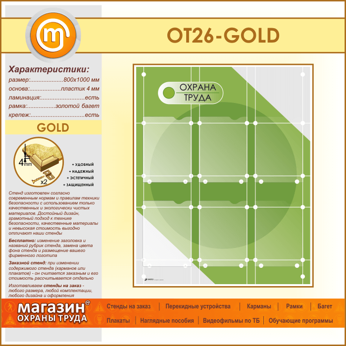 Стенд «Охрана труда» с 6 плоскими карманами (OT-26-GOLD) в Пензе купить