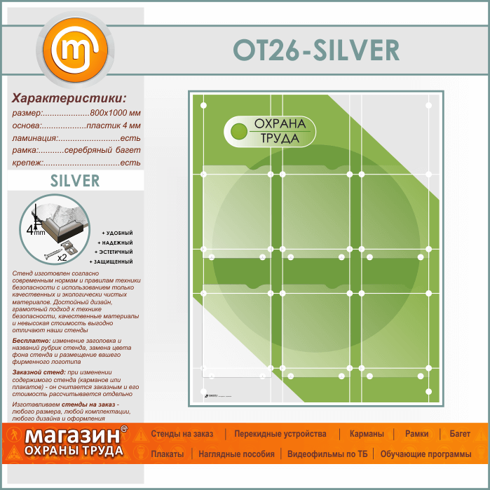 Стенд «Охрана труда» с 6 плоскими карманами (OT-26-SILVER) в Пензе купить