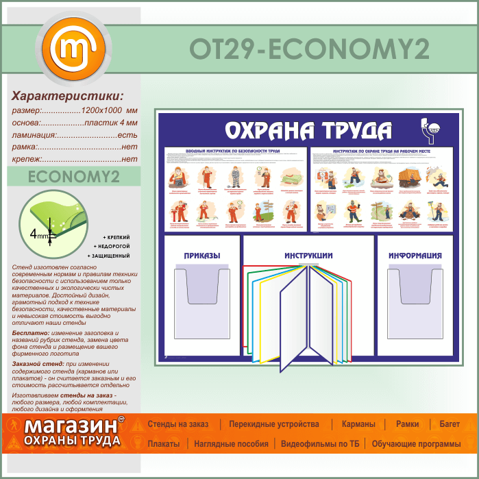 Стенд «Охрана труда» с перекидной системой и 2 объемными карманами (OT-29-ECONOMY2) в Пензе купить