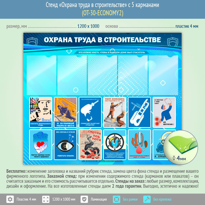 Стенд «Охрана труда в строительстве» с 5 карманами (OT-30-ECONOMY2) в Пензе купить