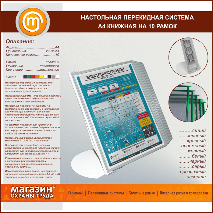 Настольная перекидная система А4 книжная на 10 рамок в Пензе купить
