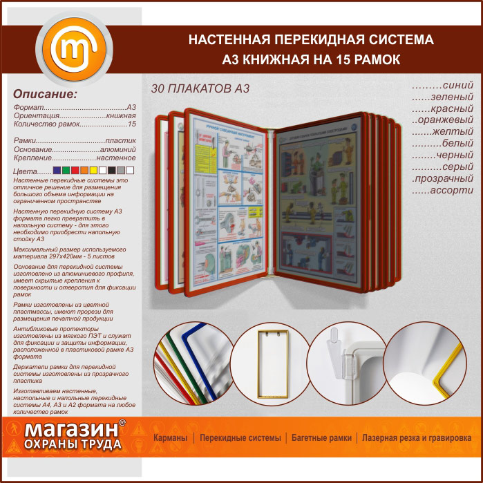 Настенная перекидная система А3 на 15 рамок книжная в Пензе купить