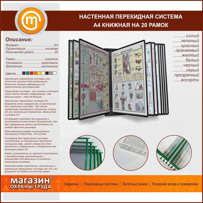Настенная перекидная система А4 на 20 рамок книжная в Пензе купить