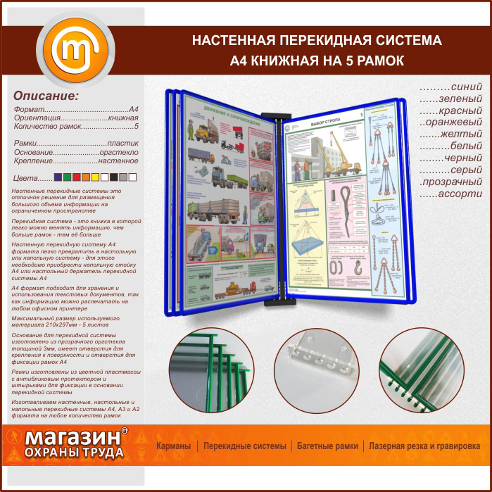 Настенная перекидная система А4 на 5 рамок книжная в Пензе купить