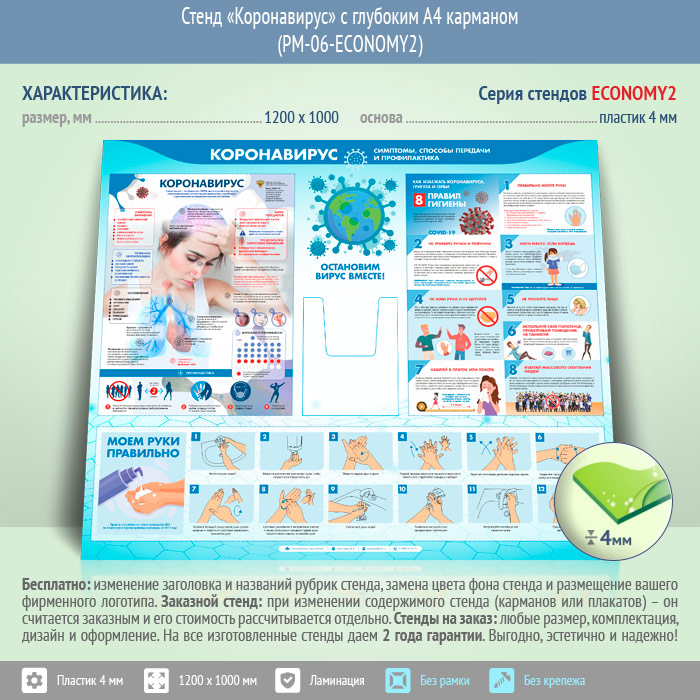 Стенд «Коронавирус» с глубоким А4 карманом (PM-06-ECONOMY2) в Пензе купить