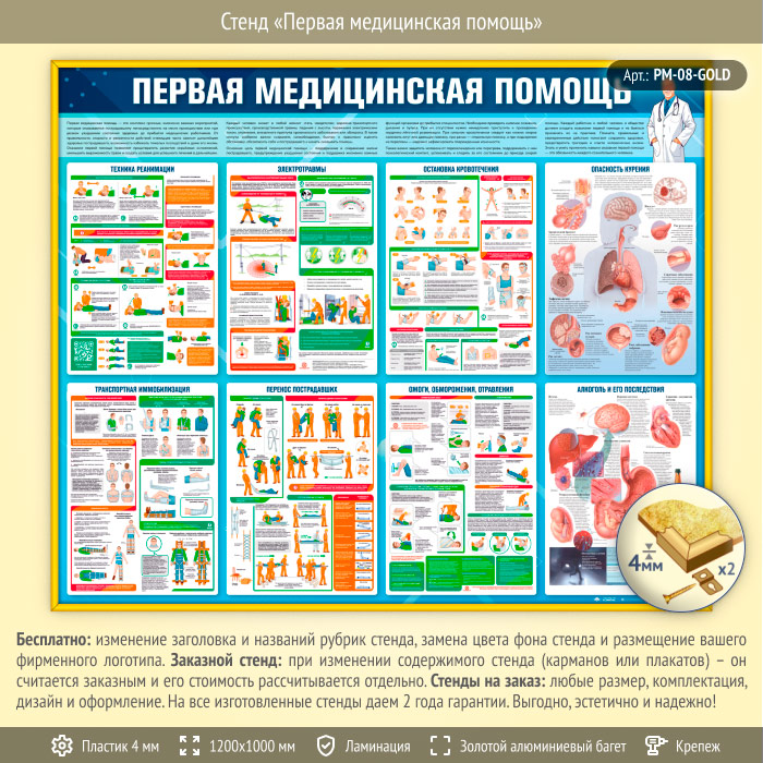 Стенд «Первая медицинская помощь» (PM-08-GOLD) в Пензе купить
