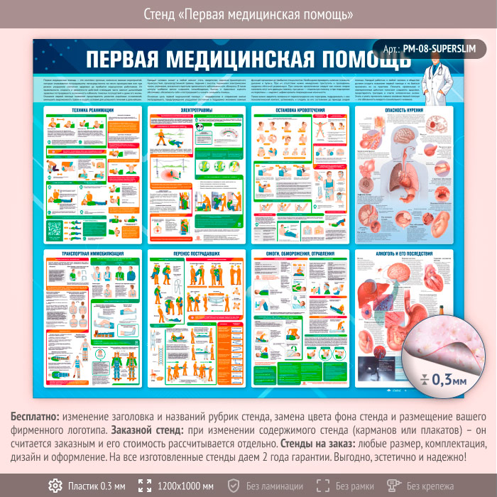 Стенд «Первая медицинская помощь» (PM-08-SUPERSLIM) в Пензе купить