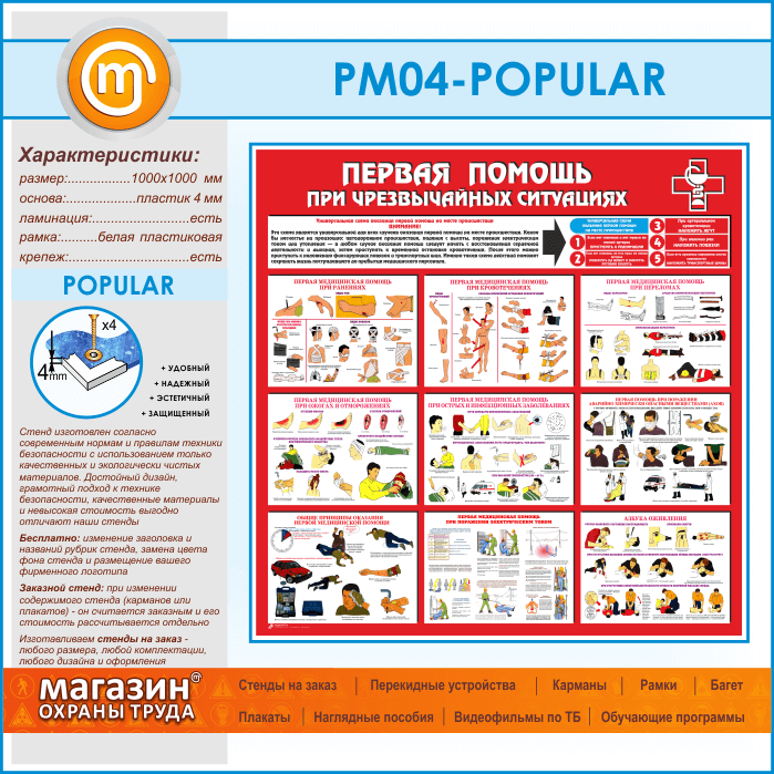 Стенд «Первая помощь при чрезвычайных ситуациях» (PM-04-POPULAR) в Пензе купить