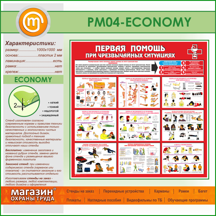 Стенд «Первая помощь при чрезвычайных ситуациях» (PM-04-ECONOMY) в Пензе купить