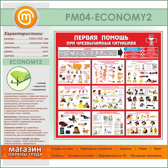 Стенд «Первая помощь при чрезвычайных ситуациях» (PM-04-ECONOMY2) в Пензе купить