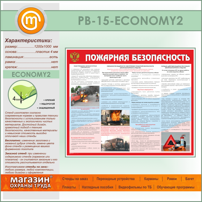 Стенд «Пожарная безопасность на автотранспорте» (PB-15-ECONOMY2) в Пензе купить