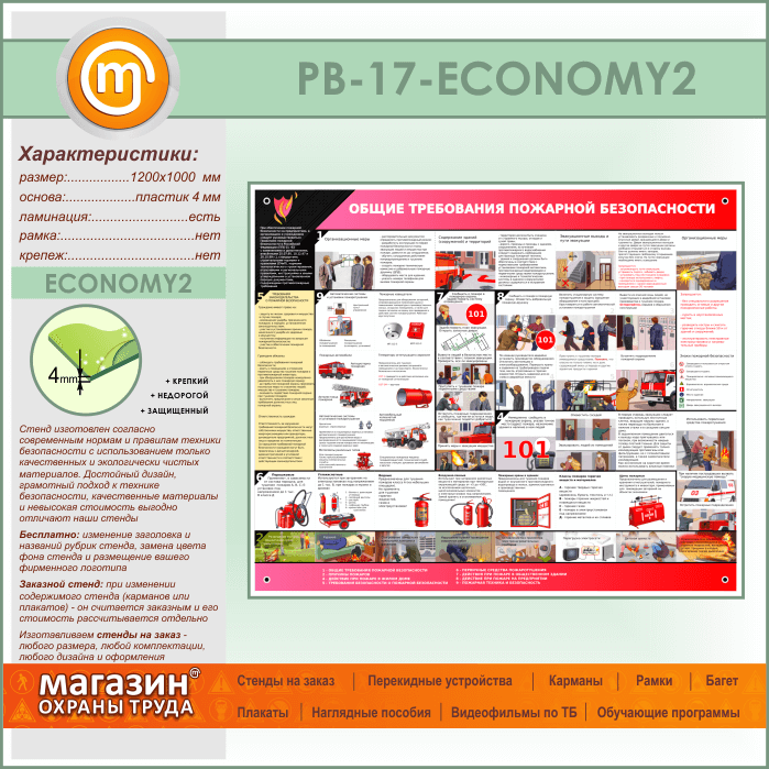Стенд «Общие требования пожарной безопасности» (PB-17-ECONOMY2) в Пензе купить